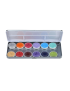 Dit palette bevat een mooie balans tussen matte en glanzende kleuren. De matte tinten zijn ideaal voor het aanbrengen van basislagen en het zetten van strakke lijnen en details. De glanzende kleuren zijn iets zachter van structuur en daardoor perfect voor het creëren van zachte, dekkende basissen met een subtiele glans. Daarnaast heb je bij deze kleuren minder water nodig om ze te activeren.