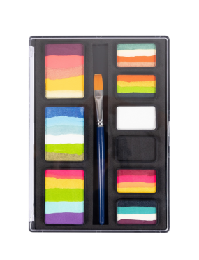 PXP splitcake palette Blurred LinesOnmisbaar palette voor het schminken van kinderen!Lange, smalle splitcakes zorgen ervoor dat je je penseel makkelijk laadt en snel mooie designs...